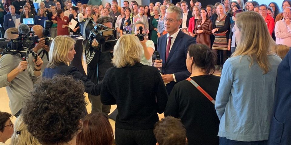 De minister beloofde vervolgens zorgvuldig met dit vele werk te zullen omgaan en prees de inzet van de leden van de ontwikkelgroepen.